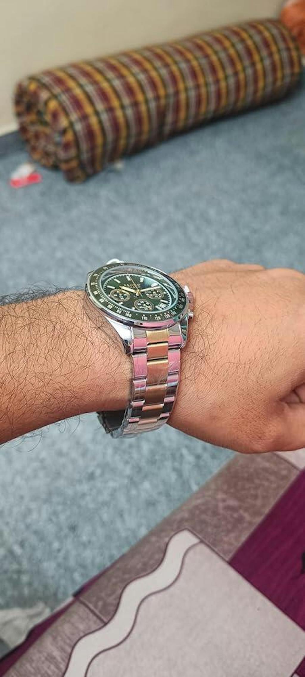 Sai Krishna Mudigiri I have hesitated a lot to order this, but to my goodness i got 80% satisfactory for the money i spent 3.5k... Nice feel , light in weight, Rich & Luxurios look.. Although date & seconds settings werent working greatly, that doesnt make me feel anything less for what i paid.. Go for it, good built quality, classy colour and Grand look for bigger occasions.. will maintain it well and use it for 3-5 yrs that serves my purpose.. This watch suits to people having medium sized wrist's like me..