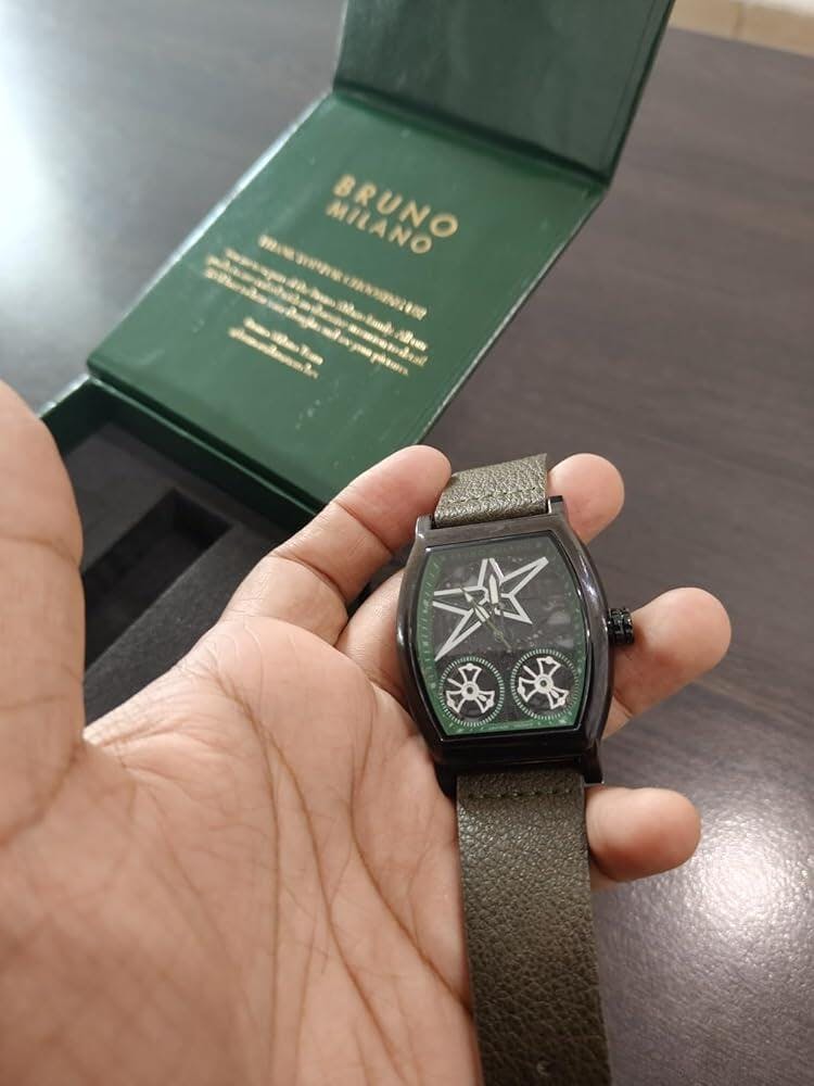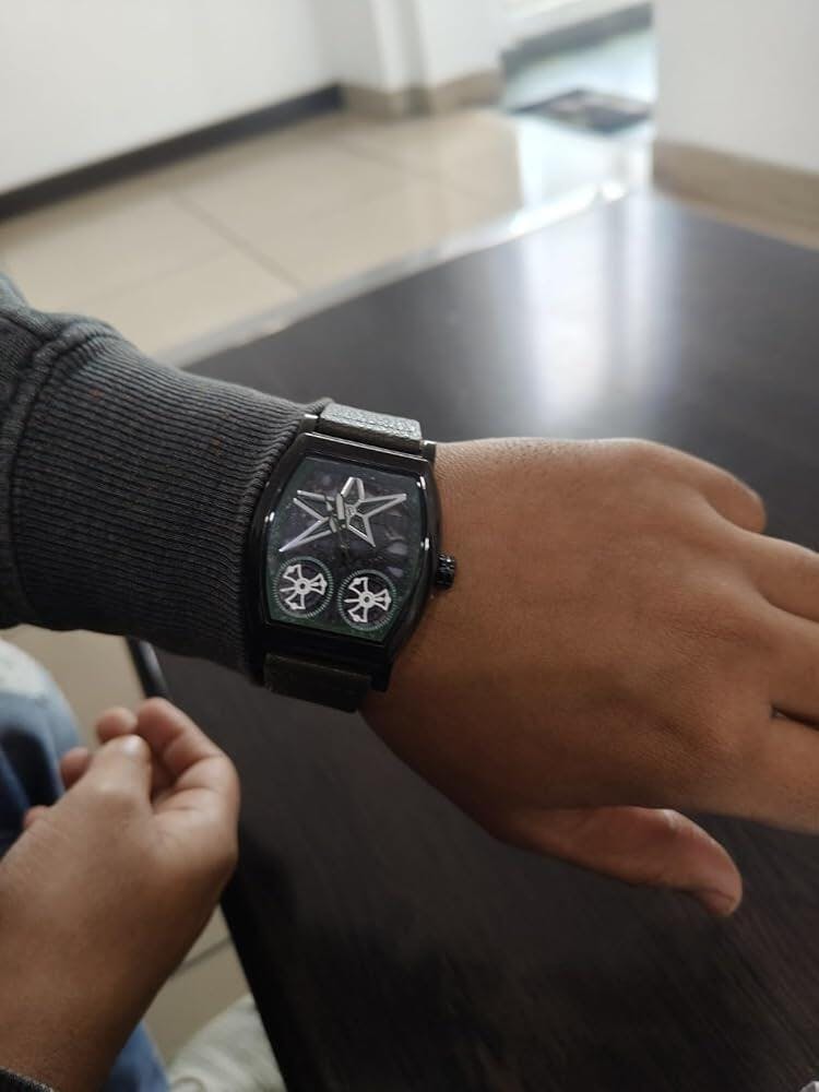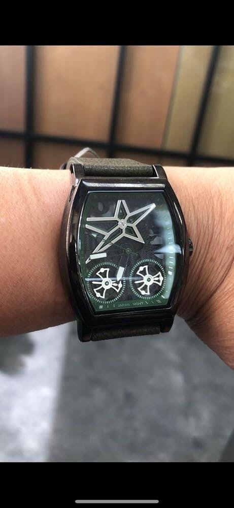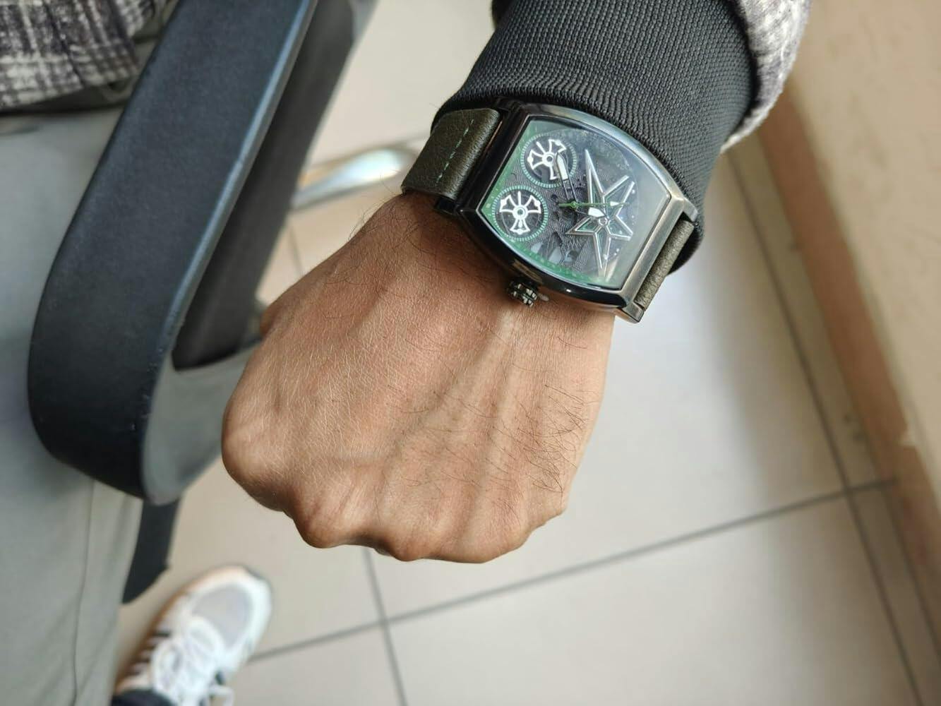 The Men's Skeleton Dial Watch with a striking star design and two gyroscroping discs in black and green is a true masterpiece of modern horology. The bold contrast between the deep black and vibrant green creates a captivating and eye-catching look that is sure to make a statement. With its open dial showcasing intricate internal mechanisms, this watch blends style and technical innovation seamlessly.